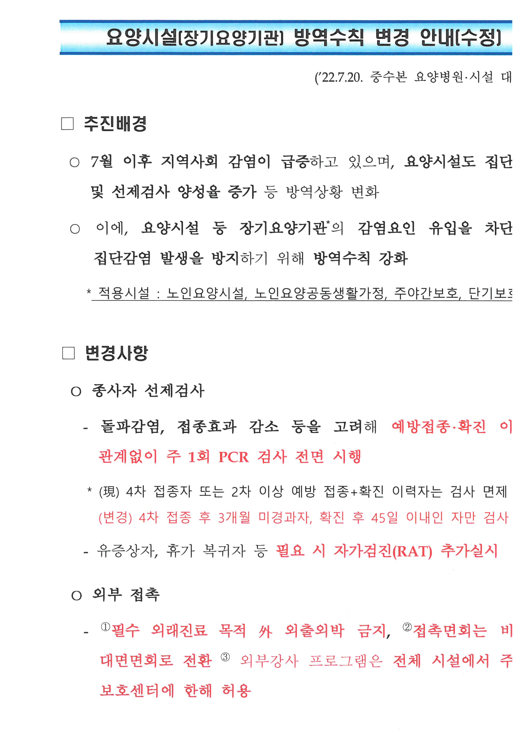| ¿ä¾ç½Ã¼³(Àå±â¿ä¾ç±â°ü) ¹æ¿ª¼öÄ¢ º¯°æ ¾È³» | |||